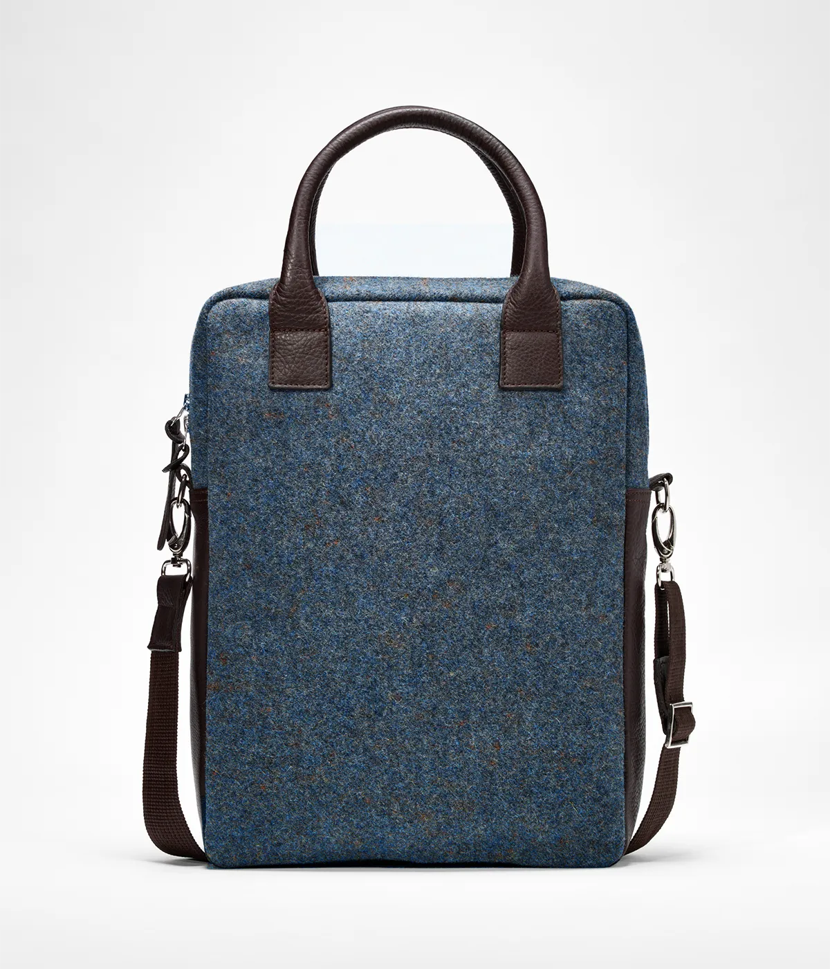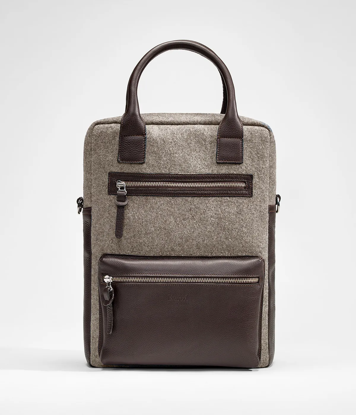 Mala tiracolo em burel e pele genuína. Alça ajustável e amovível.