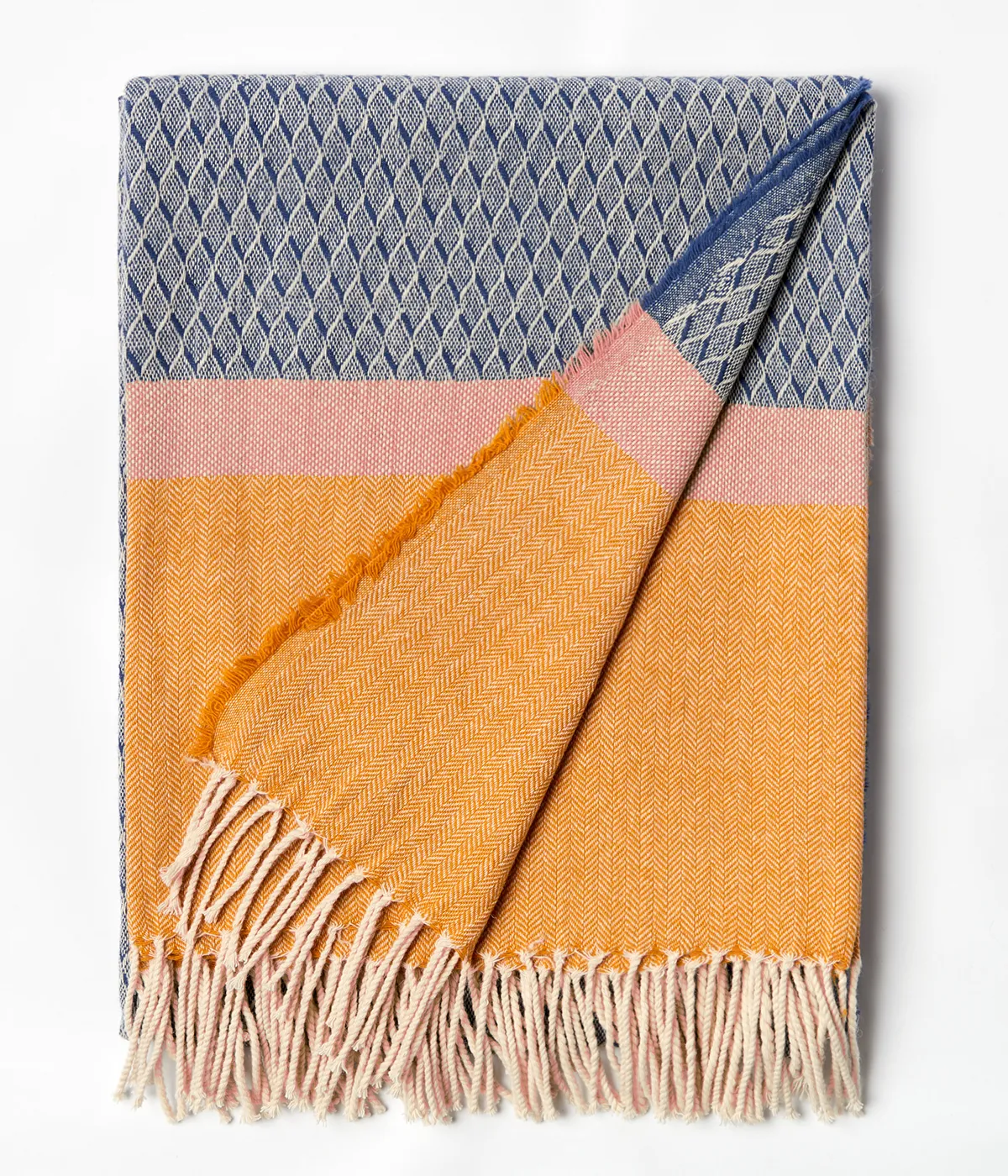 Tecelagem feita em tear ancestral, acabada à mão por mestres de um saber transmitido entre gerações.