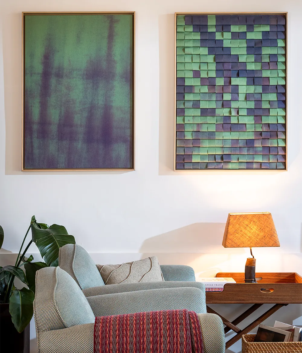 Painel de parede feito em burel tingido, 100% lã, com o Ponto de Burel Pixel. Uma forma de arte manual construída peça a peça, ponto a ponto, com mestria, engenho e saber transmitido por gerações de gentes da montanha.