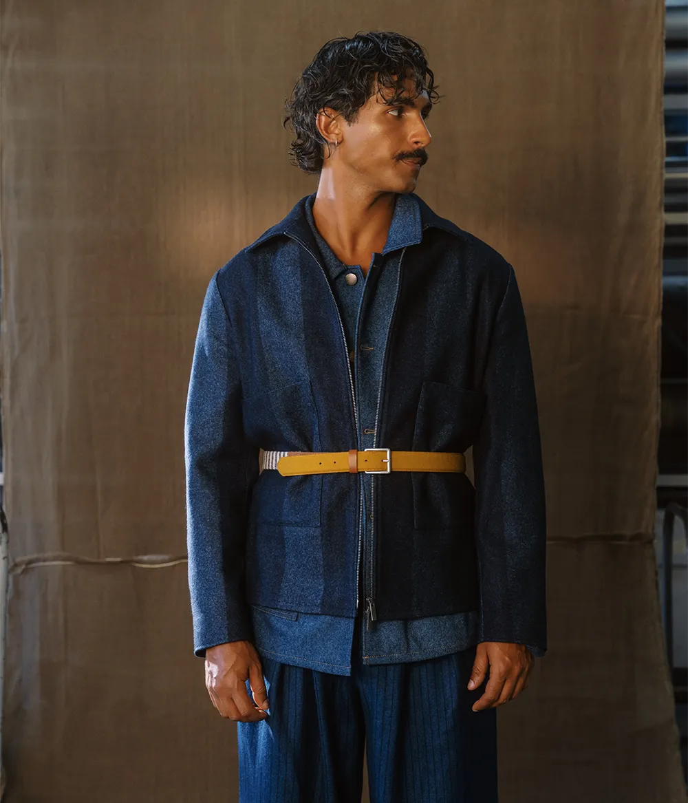 Este processo consiste em tratar o tecido com um resistente ao tingimento. Durante a tinturaria, parte das fibras repele o corante, criando naturalmente um efeito de tonalidade irregular — semelhante ao das lavagens e desgastes típicos do denim.
