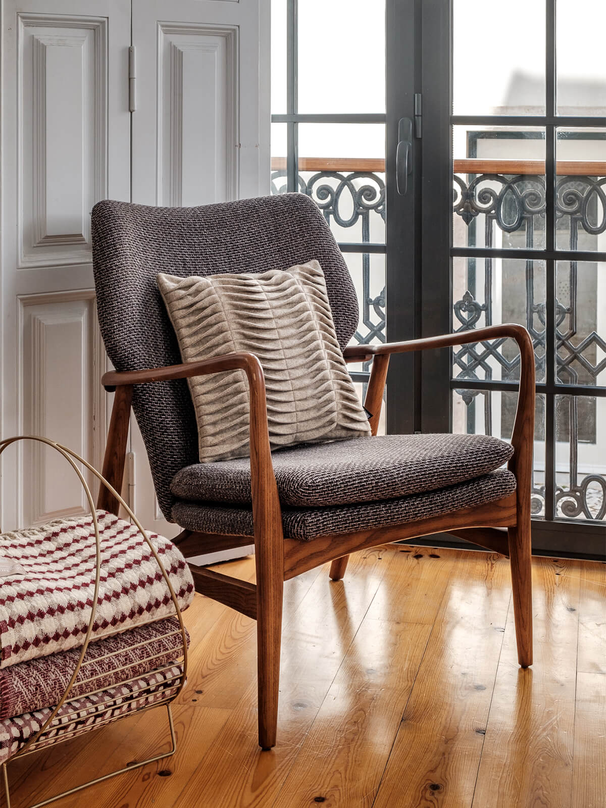 Composto por 100% lã, material natural, resistente, durável, e por isso uma opção sustentável.