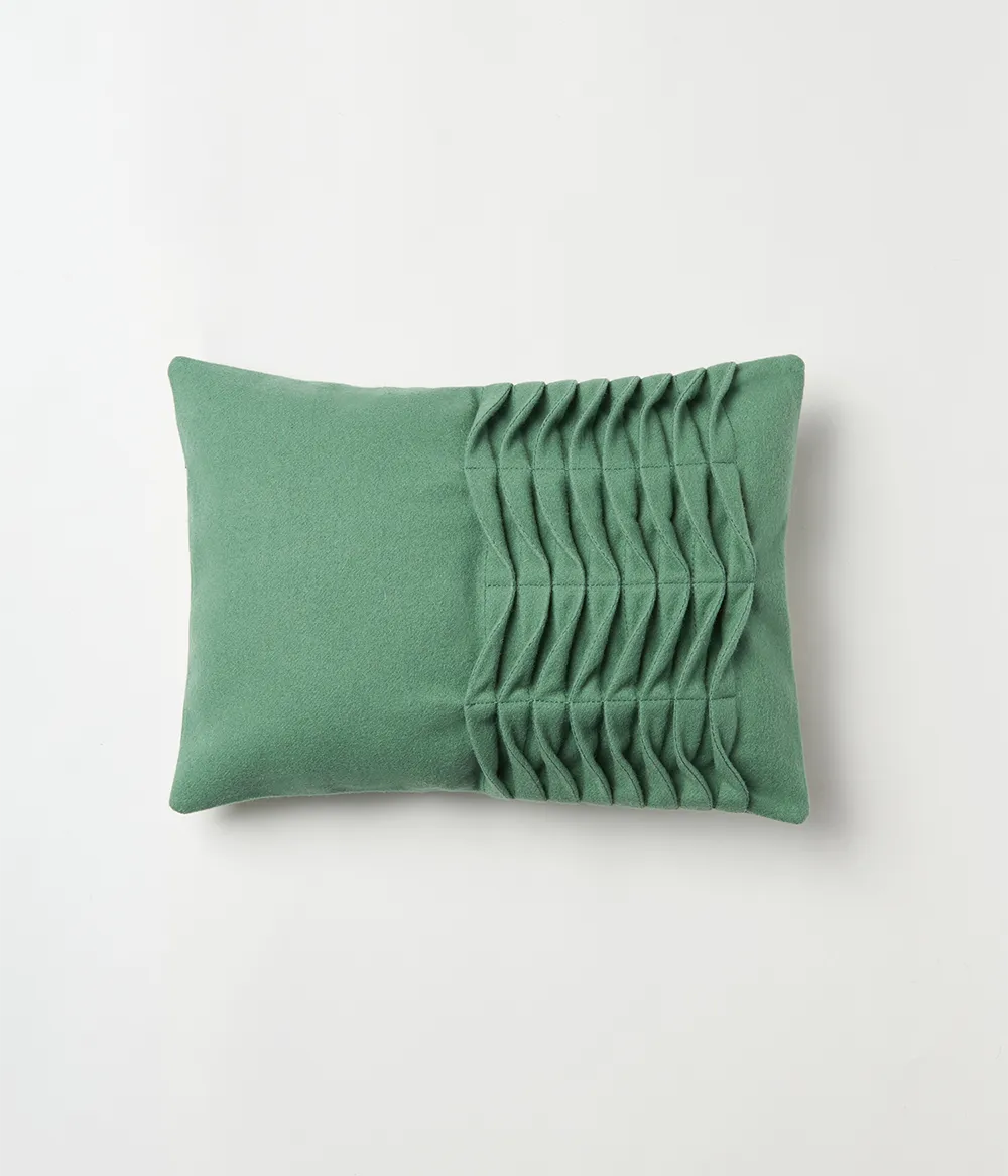 Almofada feita em burel, 100% lã, com o Ponto de Burel Leivas costurado à mão. Verso em burel liso na cor principal.