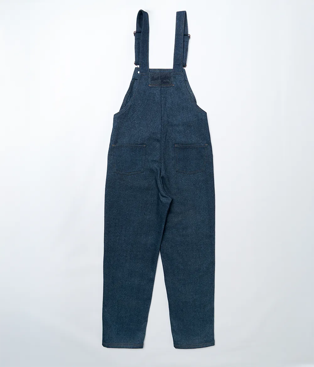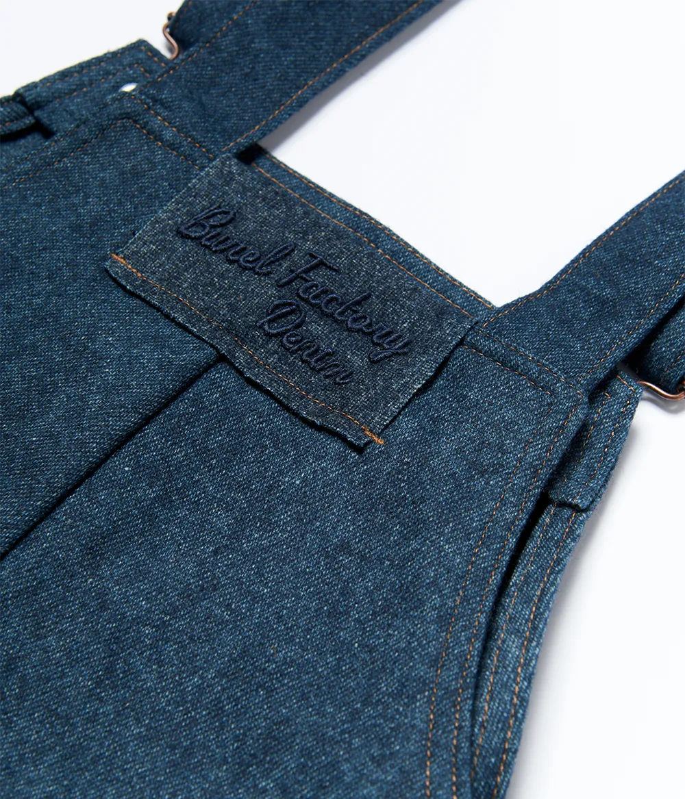 Feitas em burel denim, estas jardineiras equilibram conforto e resistência. Os botões laterais ajustáveis e as alças reforçadas permitem uma utilização versátil, enquanto o tecido de lã assegura calor e durabilidade. Uma leitura contemporânea de um clássico do vestuário.