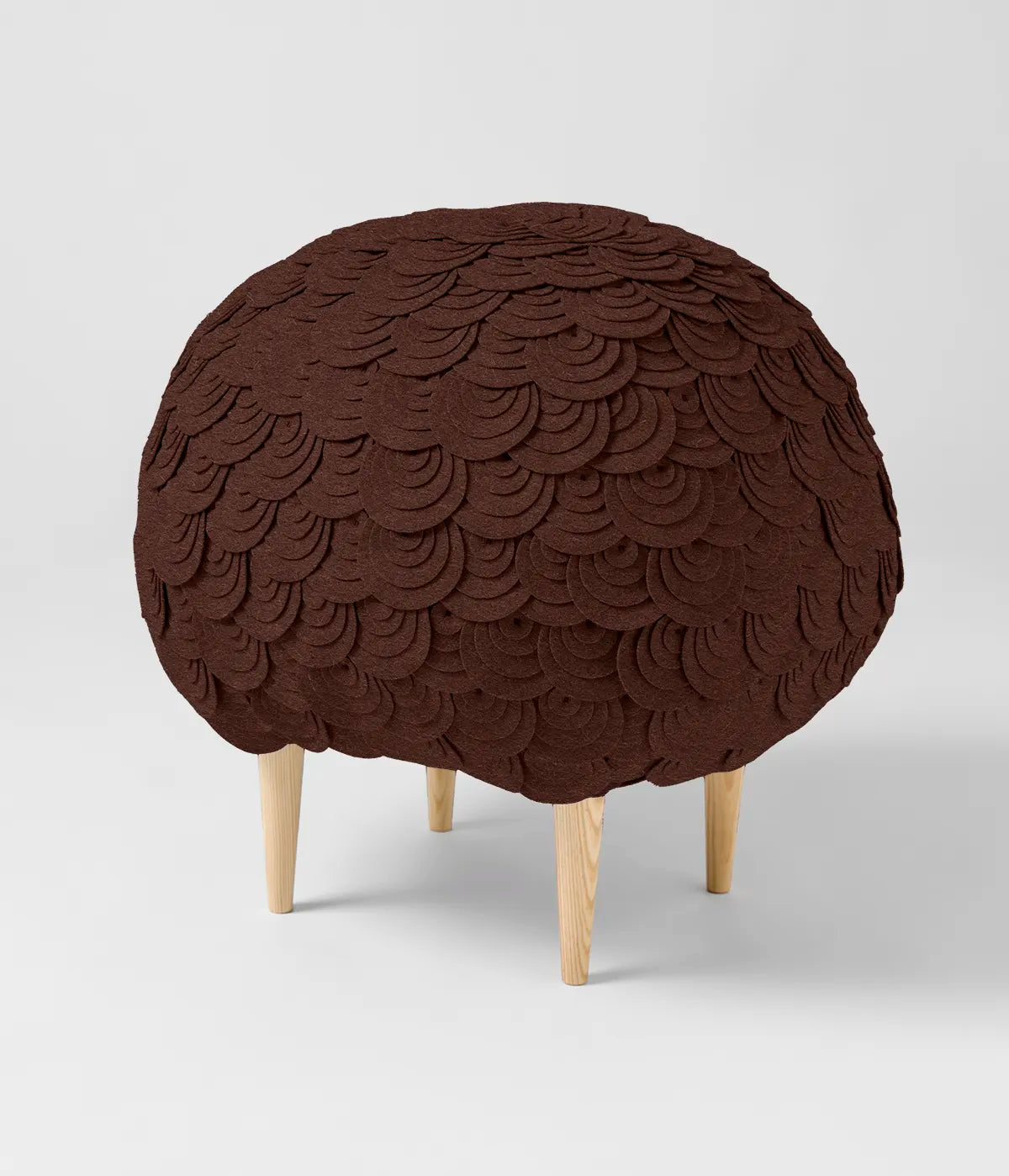 Banco com almofada de alta densidade, forrada com o Ponto de Burel Ovelha. Pernas em madeira de pinho.