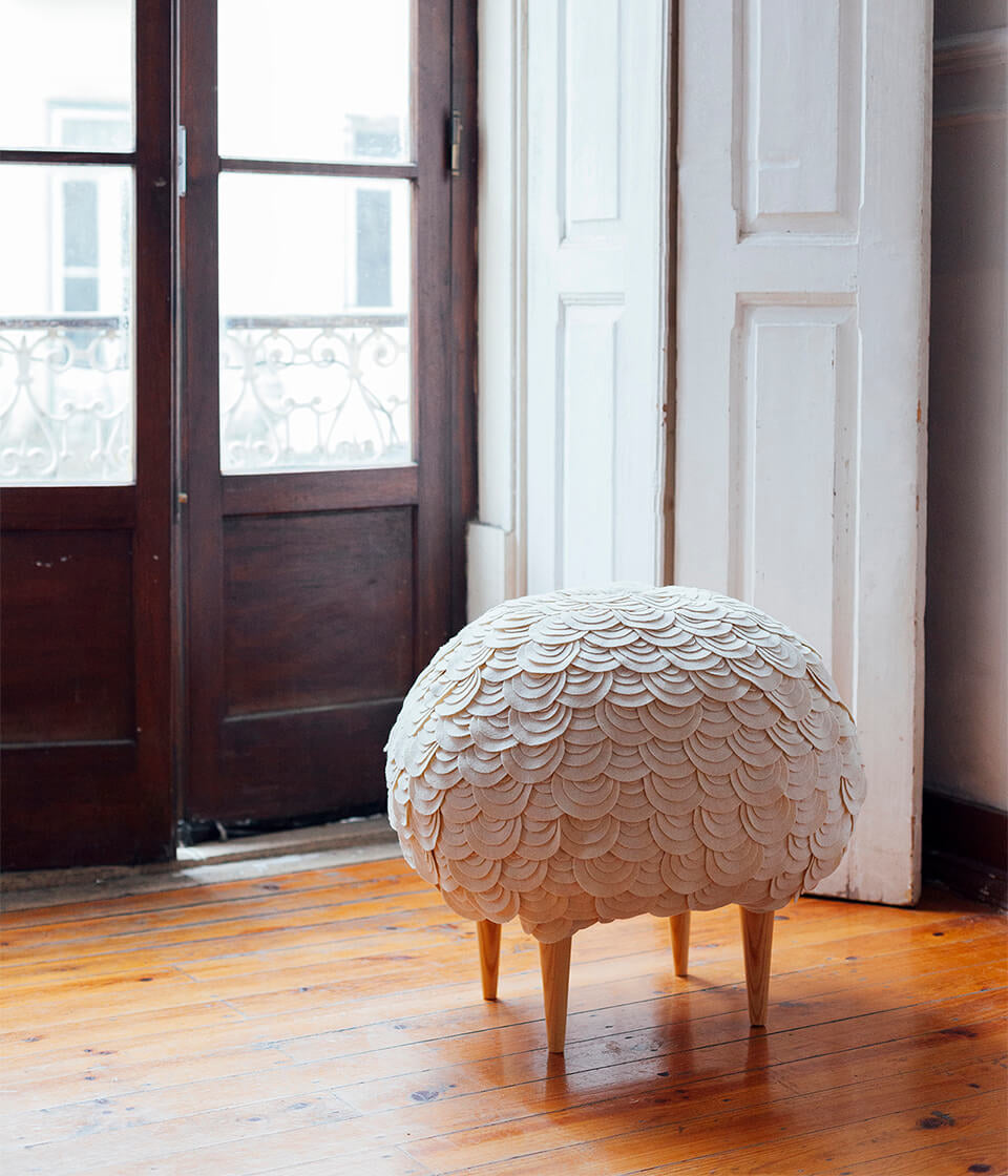 Revestimento feito em 100% lã, material natural, resistente, durável, e por isso uma opção sustentável.