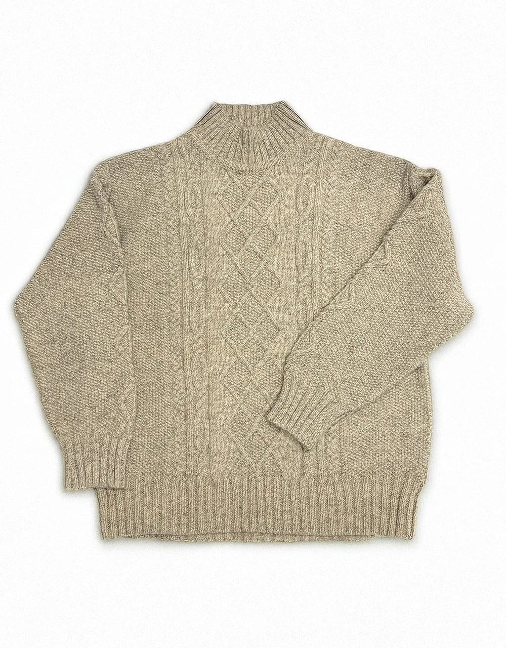 Camisola de malha 100% lã, mangas comprida e decote redondo, perfeita para aquecer os dias frios.