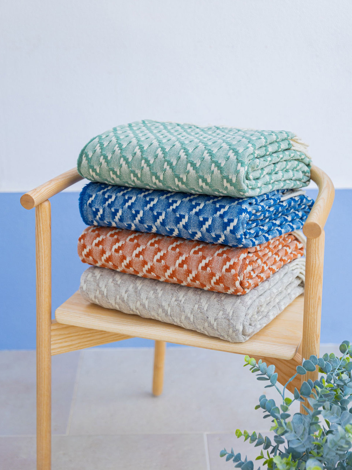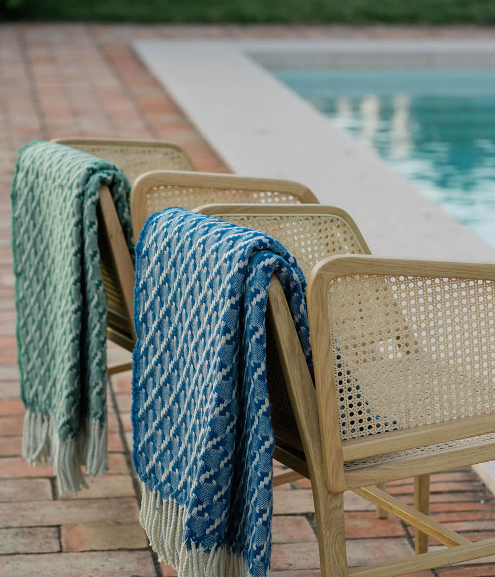 Tecelagem feita em tear ancestral, acabada à mão por mestres de um saber transmitido entre gerações.