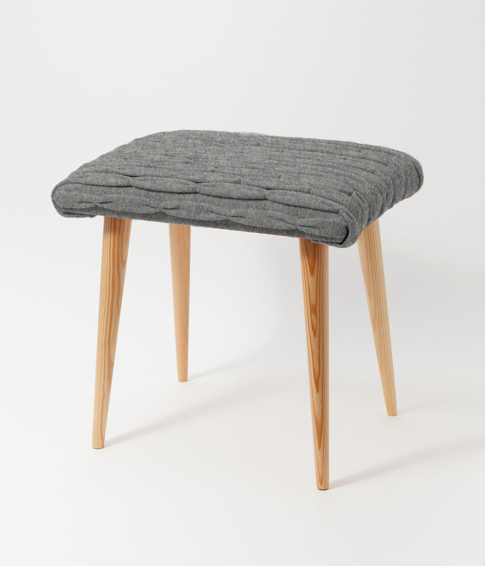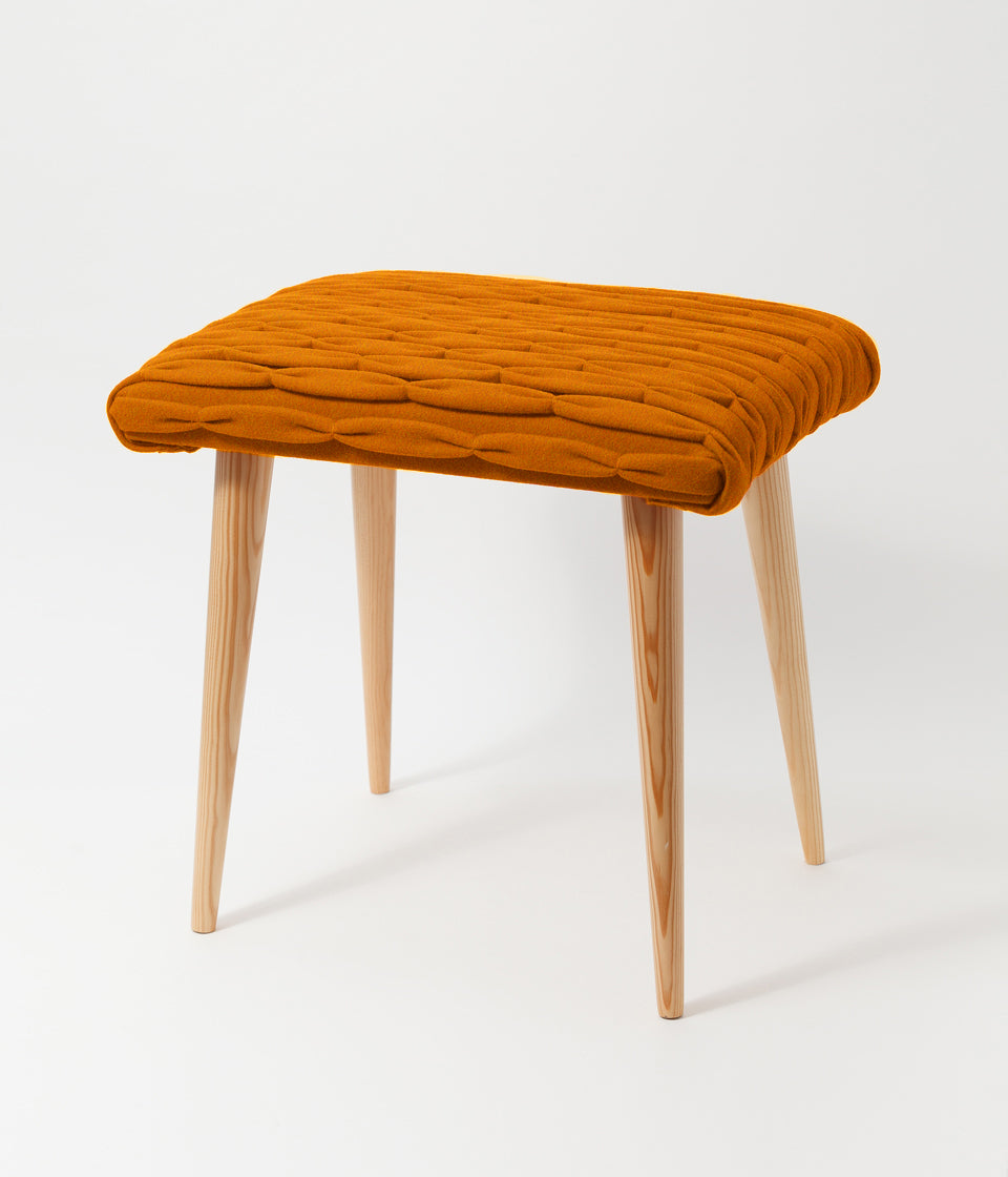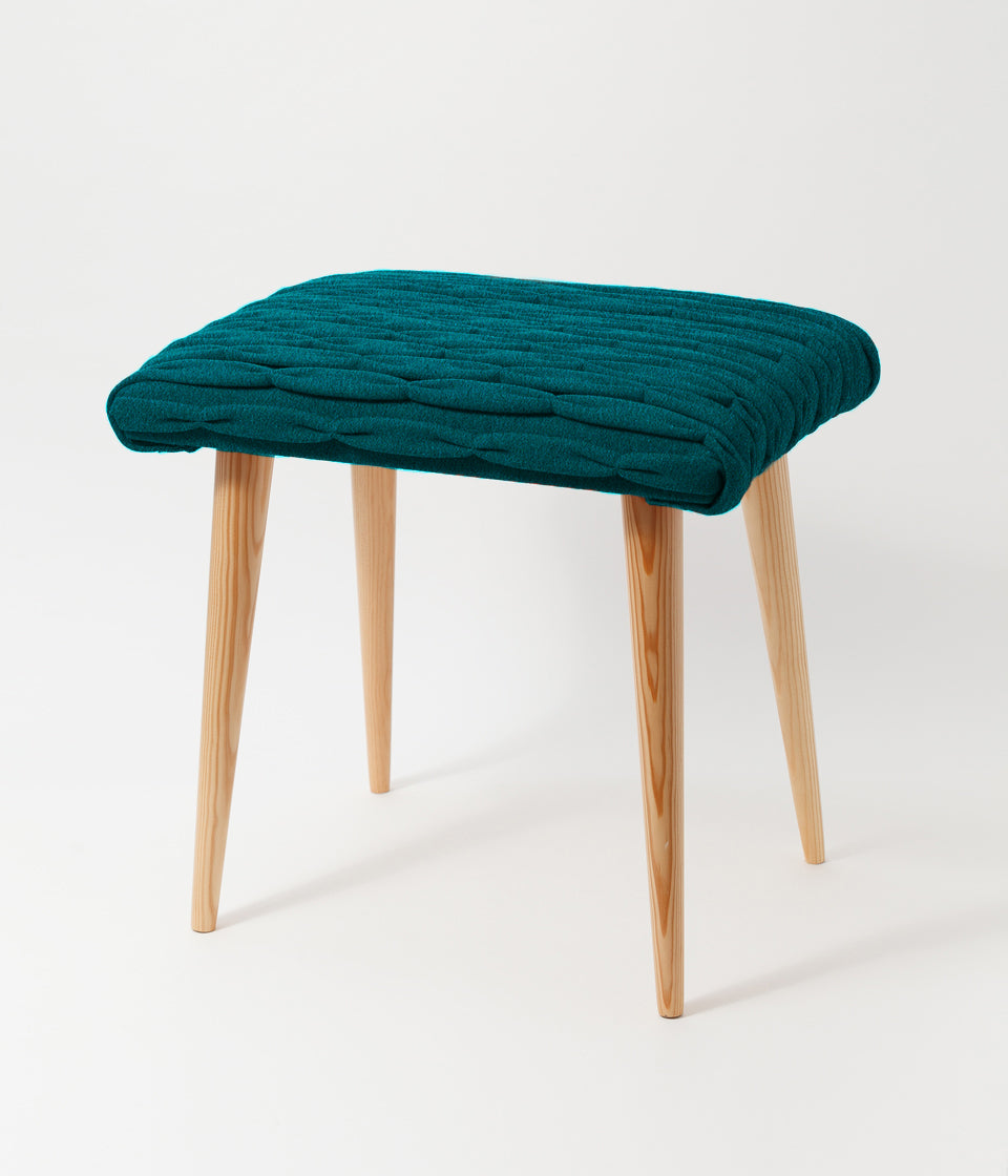 Banco com almofada de alta densidade, forrada com o Ponto de Burel Canais. Estrutura em madeira de pinho.