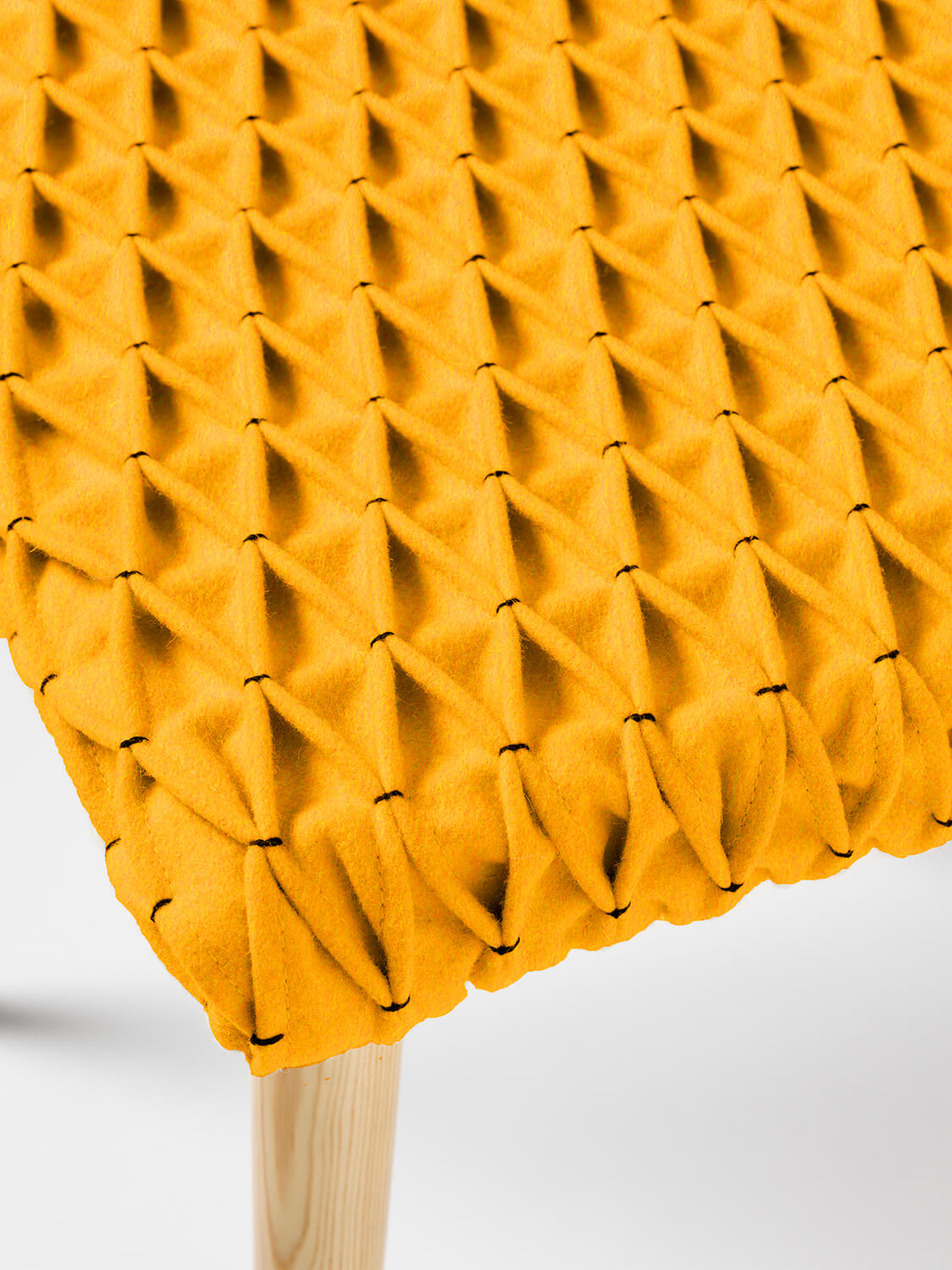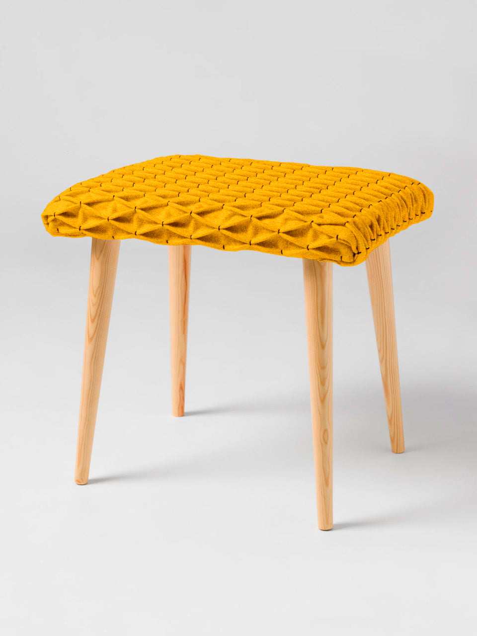 Banco com almofada de alta densidade, forrada com o Ponto de Burel Favos. Pernas em madeira de pinho.