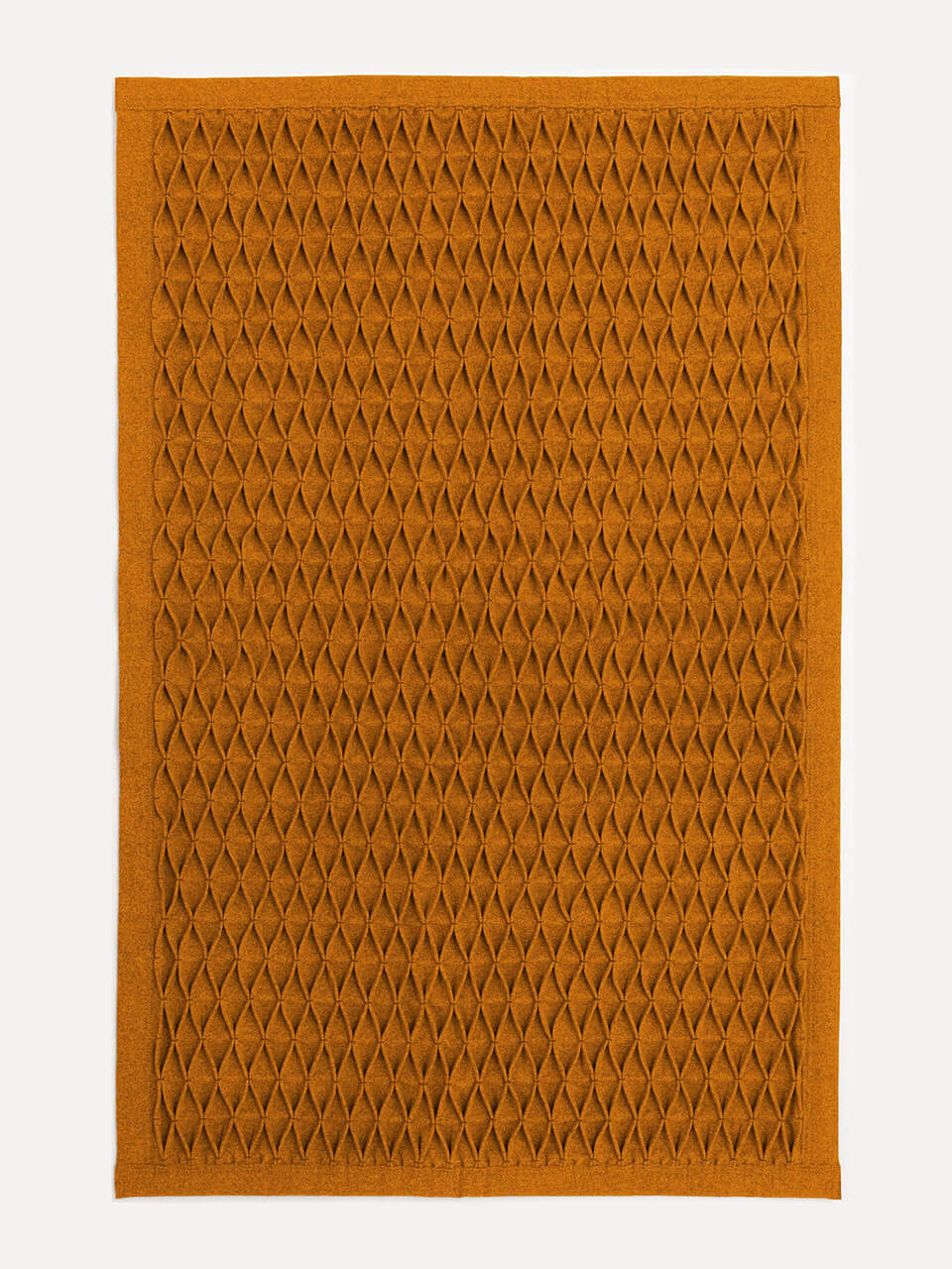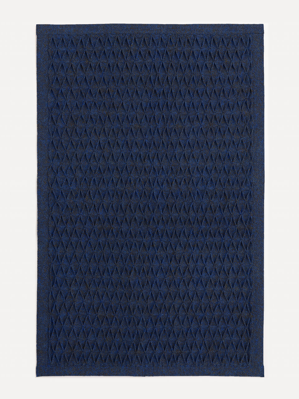 Tapete feito de burel, 100% lã, com o Ponto de Burel Favos costurado à mão.