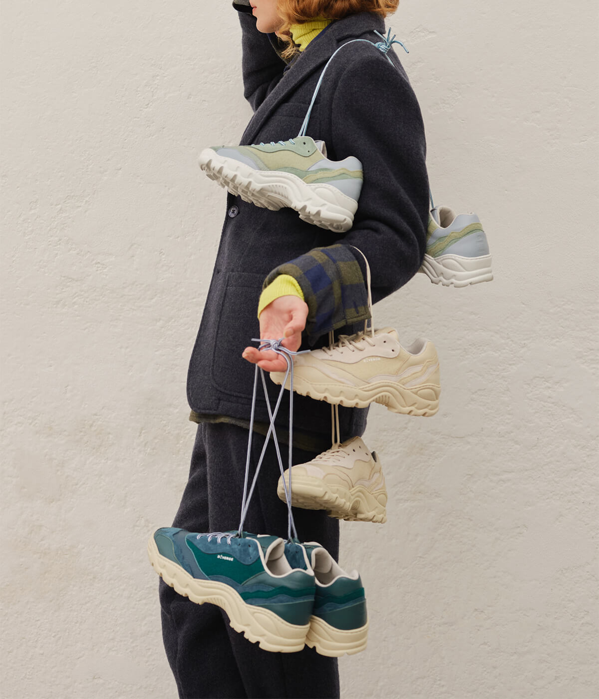 Sapatilhas feitas à mão em Portugal, com retalhos de burel, nubuk e pele premium. Cada par é eticamente feito à mão e leva cerca de duas semanas em produção.
