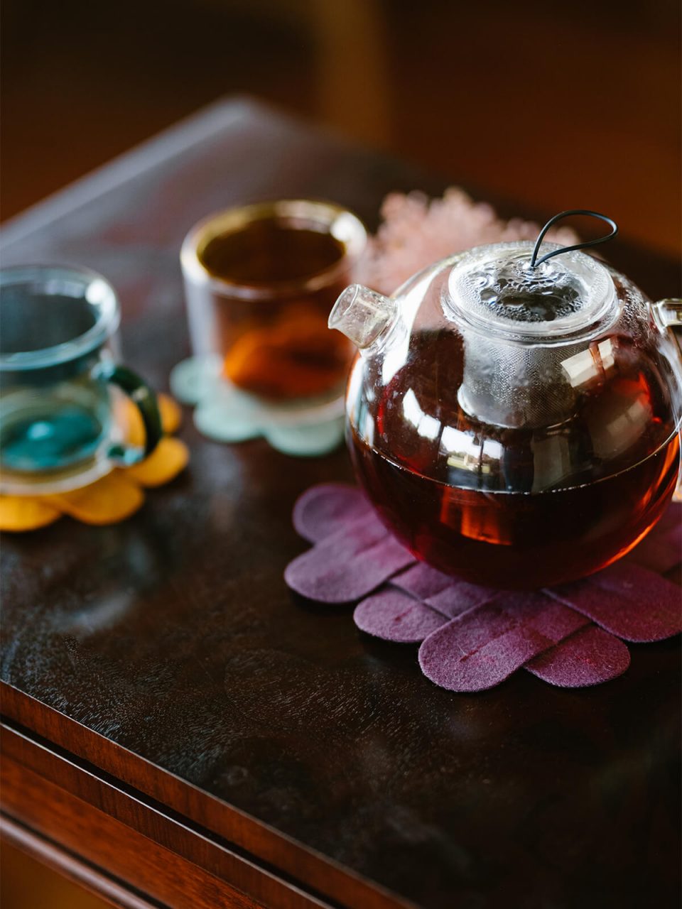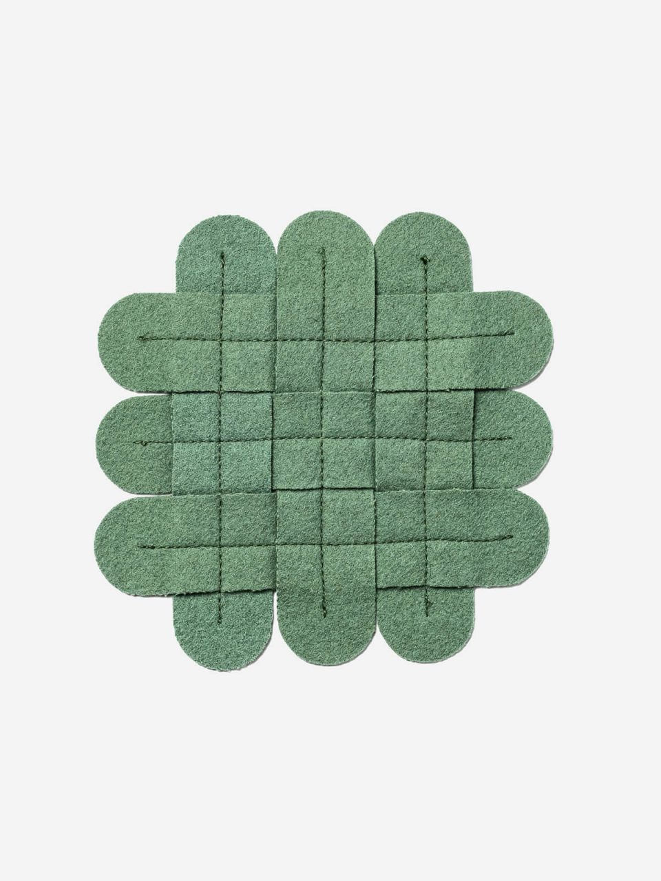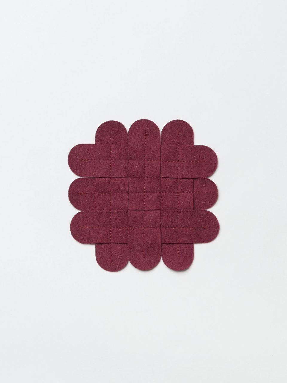 Base de quentes em burel, 100% lã, com efeito rattan.
