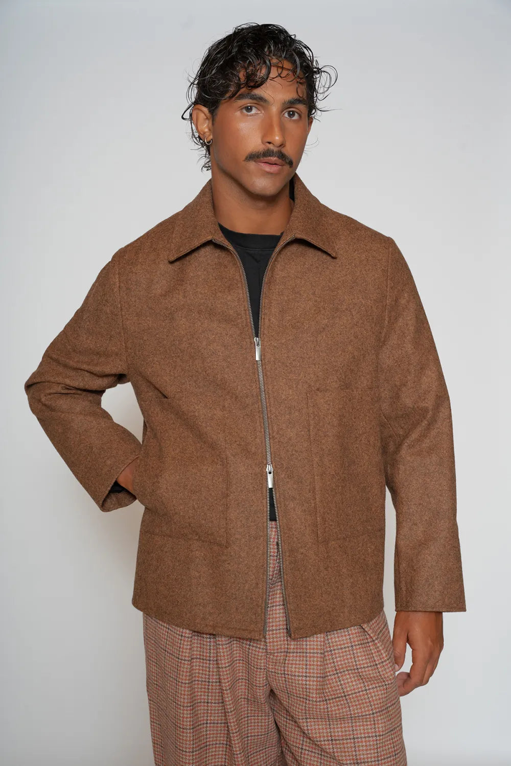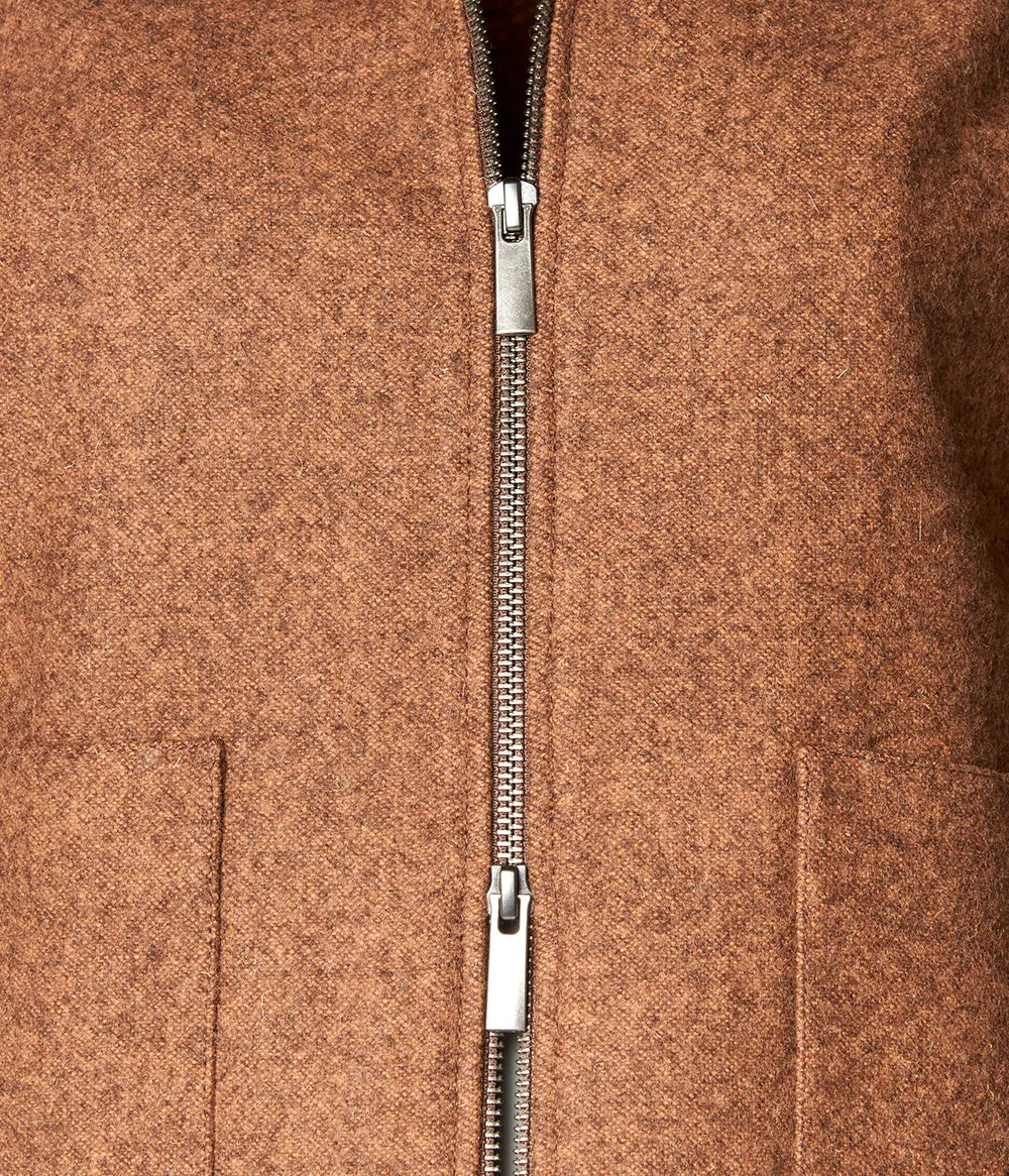 Casaco curto com fecho de duplo cursor, 2 bolsos de chapa. Forrado nas mangas.