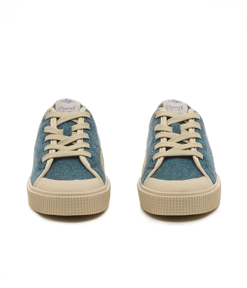 Os icónicos ténis da Sanjo, agora revestidos a burel para maior calor, conforto e resistência à chuva.