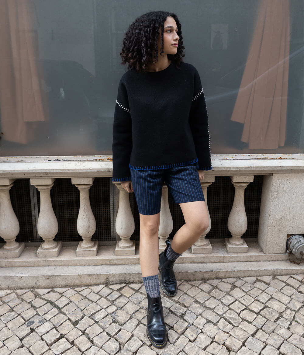 Assumindo o ciclo completo da lã na nossa fábrica, uma coleção que é feita por pessoas, várias pessoas, que tecem, costuram, bordam e colocam toda a arte de trabalhar a lã na mestria que têm nas mãos - com parceiros de confecção que seguem os mesmos padrões.