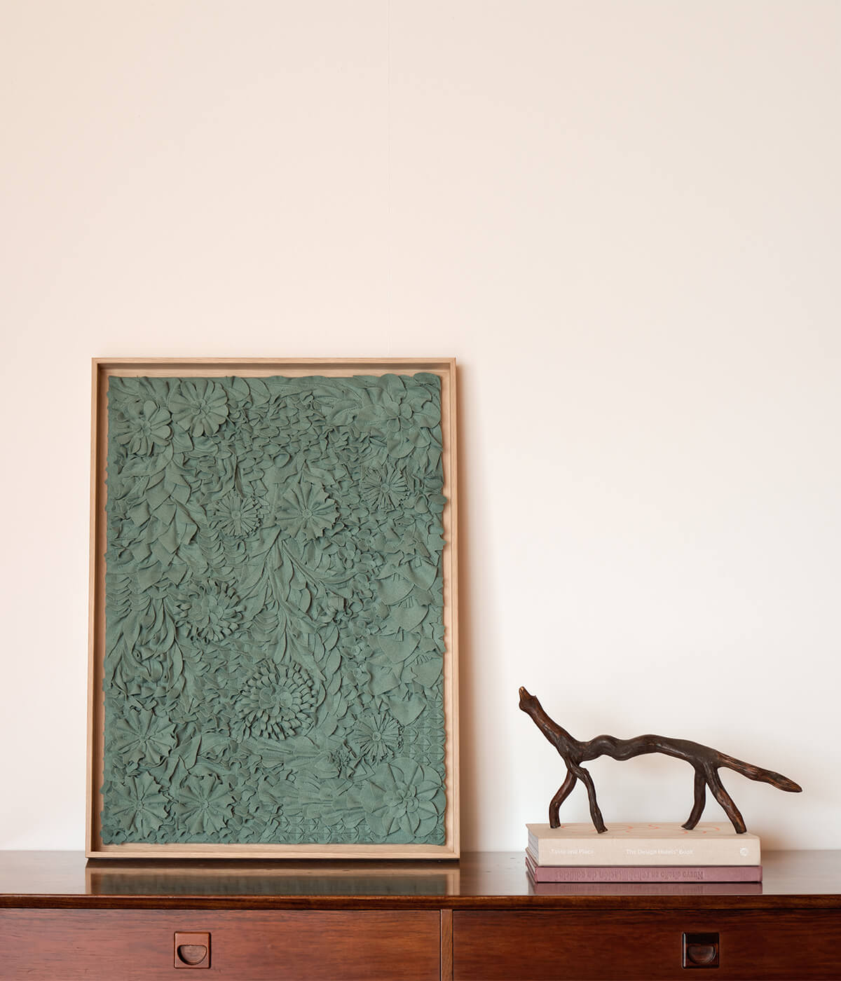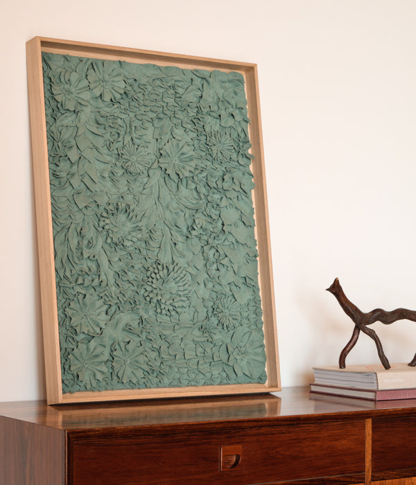 Primavera é uma composição floral feita em burel para dar forma a um painel, revestimentos de parede, ou aplicar em peças de decoração e design de interiores. Uma forma de arte manual construída peça a peça, ponto a ponto, com mestria, engenho e saber transmitido por gerações de gentes da montanha.