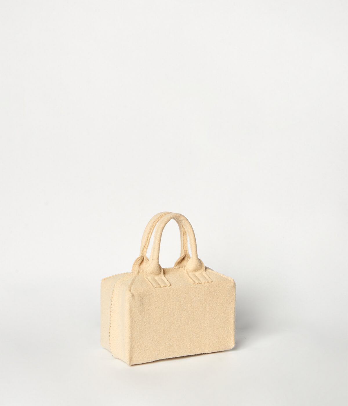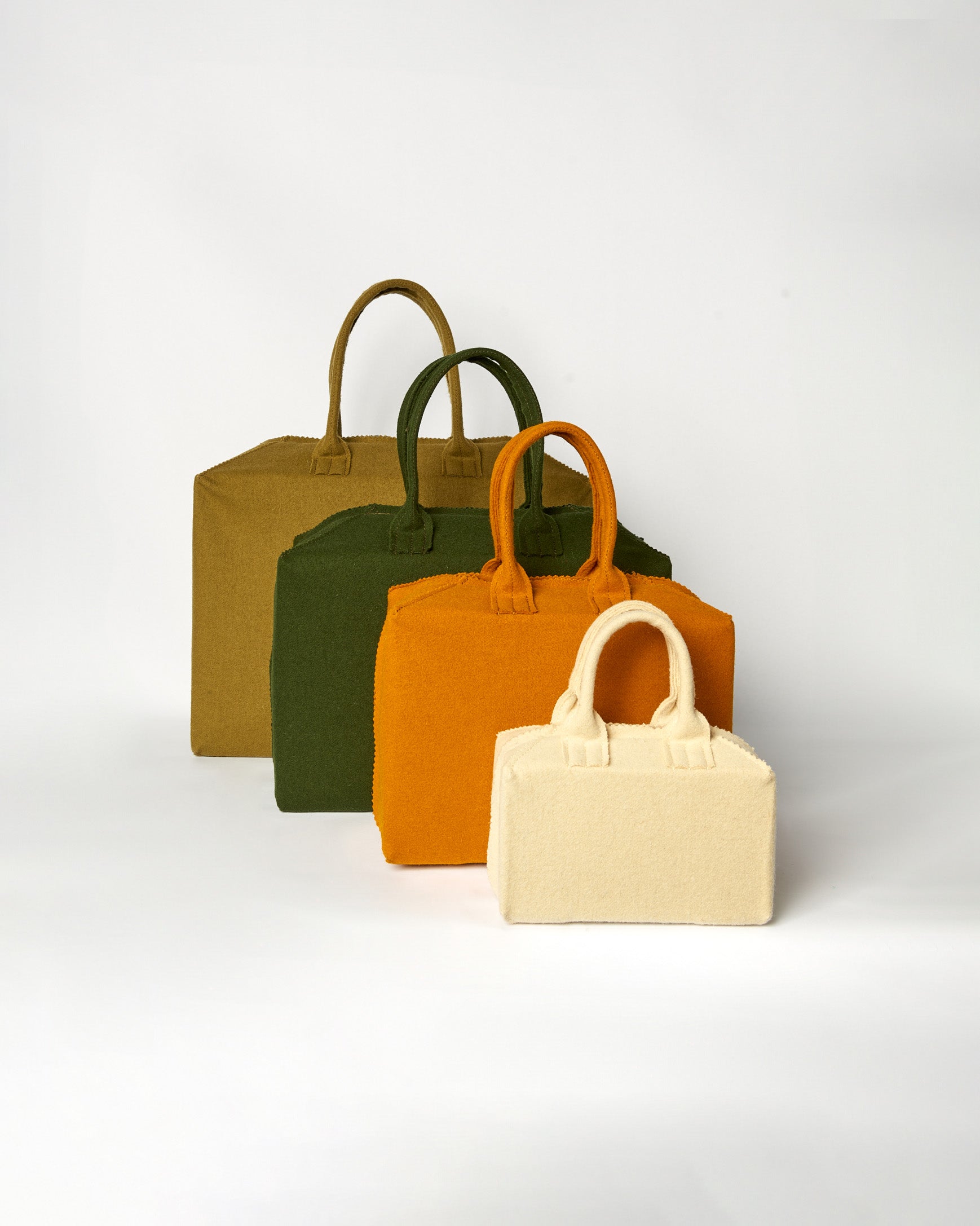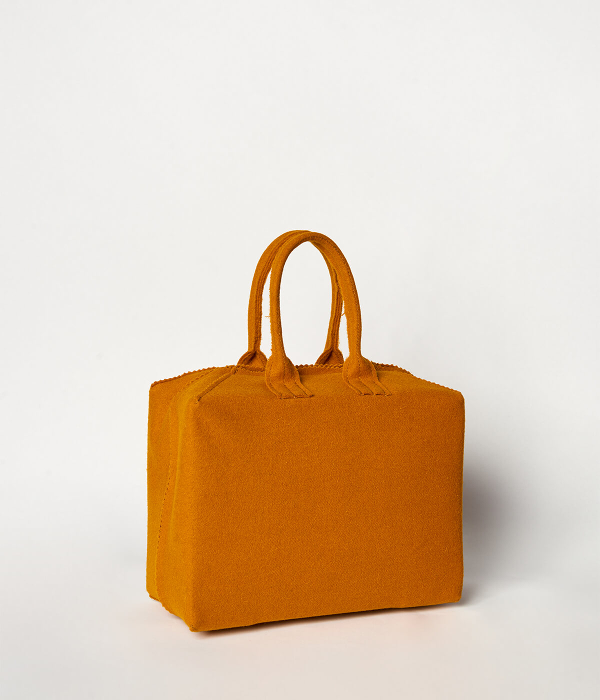 Mala de burel 800gr estruturada e feita à mão a partir de uma só costura e com fecho éclair que permite que seja espalmada para optimizar o espaço.