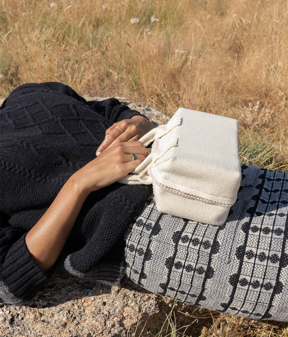 O burel é um tecido 100% lã, feito de forma artesanal e consciente em teares ancestrais, por mestres que guardam a arte de trabalhar a lã há gerações. A lã é local e proveniente de ovelhas felizes que pastam ao ar livre nas montanhas.